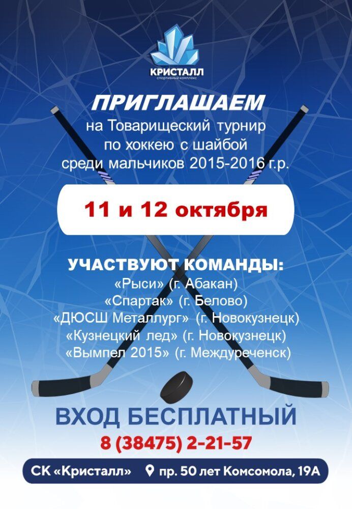 Товарищеский турнир по хоккею с шайбой среди мальчиков 2015-2016 г.р.