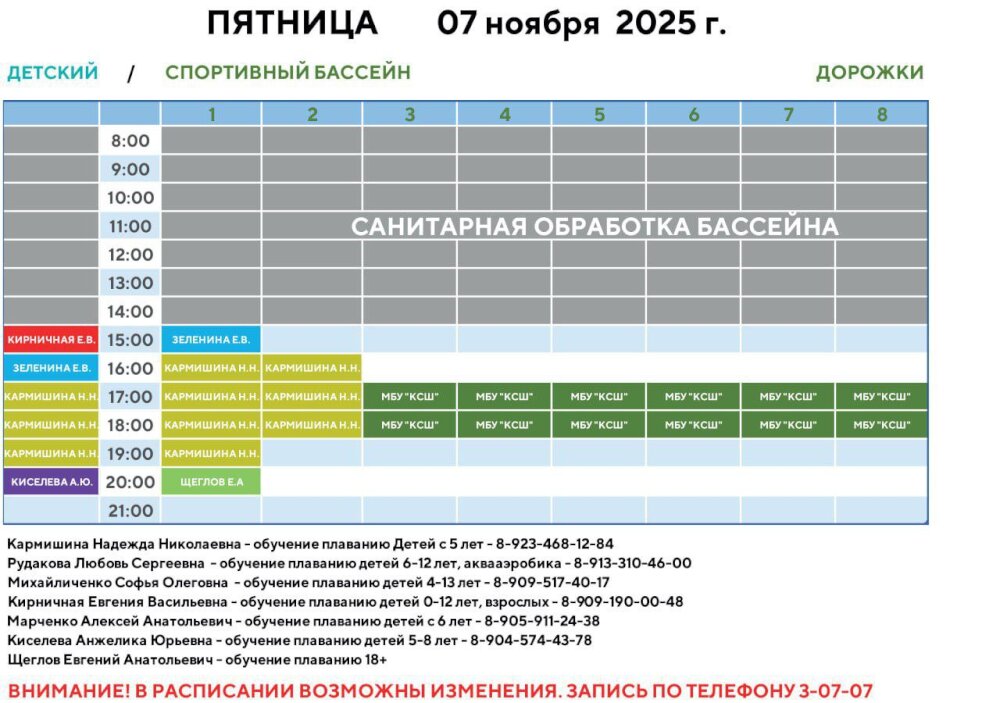 Спортивный бассейн начнет свою работу в 15:00;