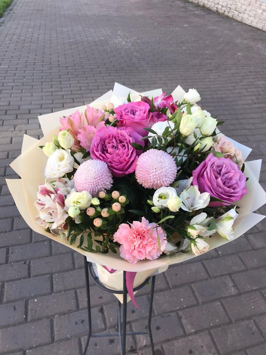 Букет может быть уменьшен, но с сохранением цветовой гаммы букета. Цена будет соответственно ниже.
