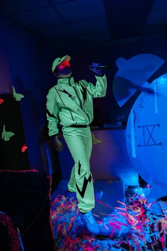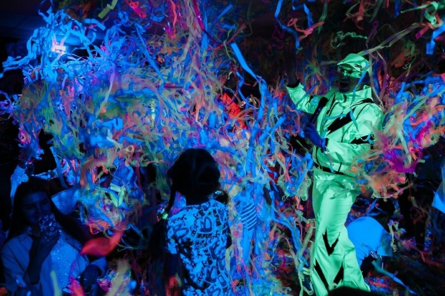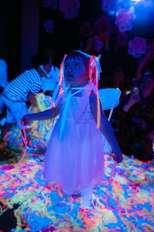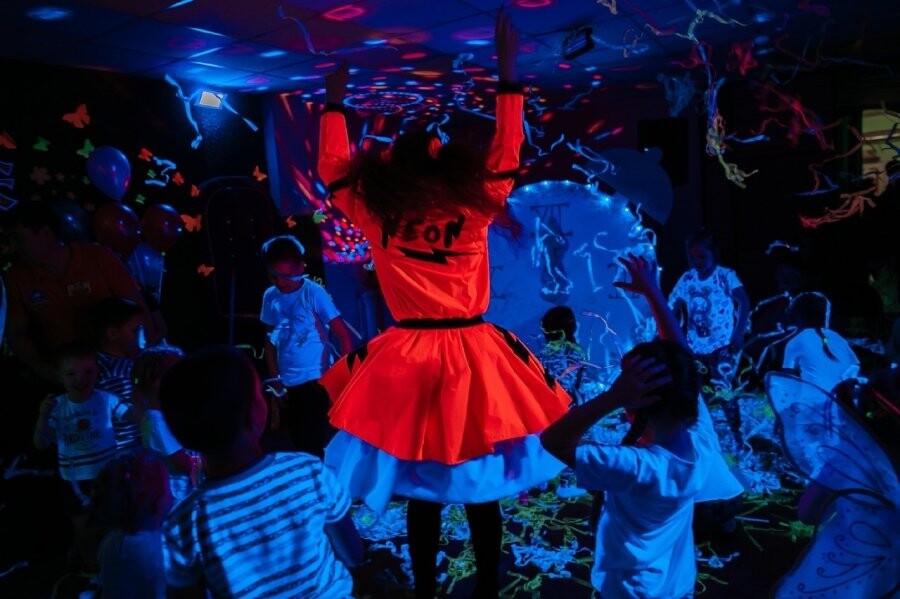 Длительность 1 час. 2 ярких ведущих. Игры со светящимся реквизитом. Светящийся аквагрим. Миллион ярких лент!