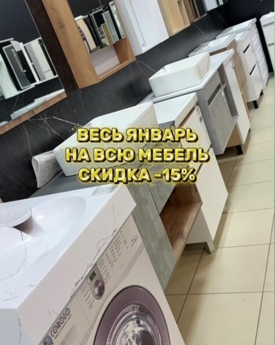 На всю мебель для ванны до конца января скидка -15%