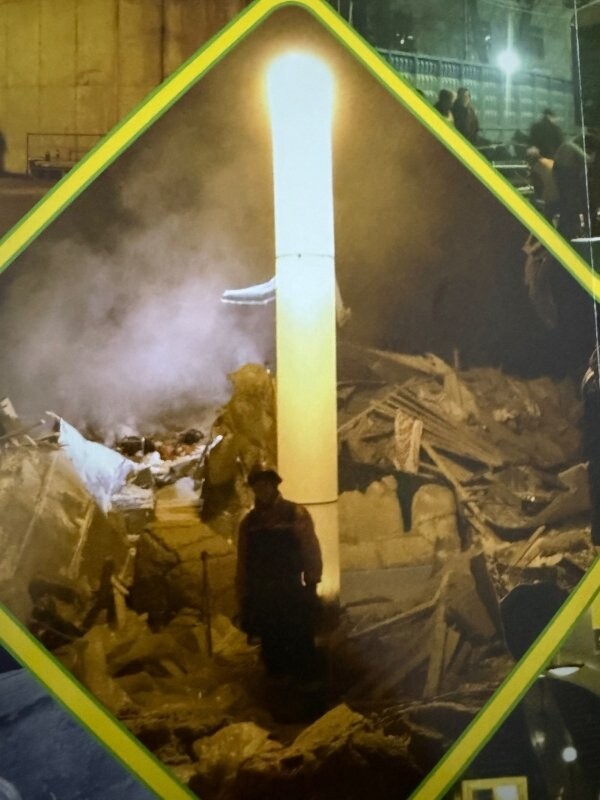 «Световая башня» представляет собой столб высотой 3, 5 или 7 метров (по желанию) и диаметром 60 см. Выполнена из специальной прочной белой ткани, позволяющей при ее надувании поднимать источник света на высоту, обеспечивающую яркое освещение площадей до 1 га.