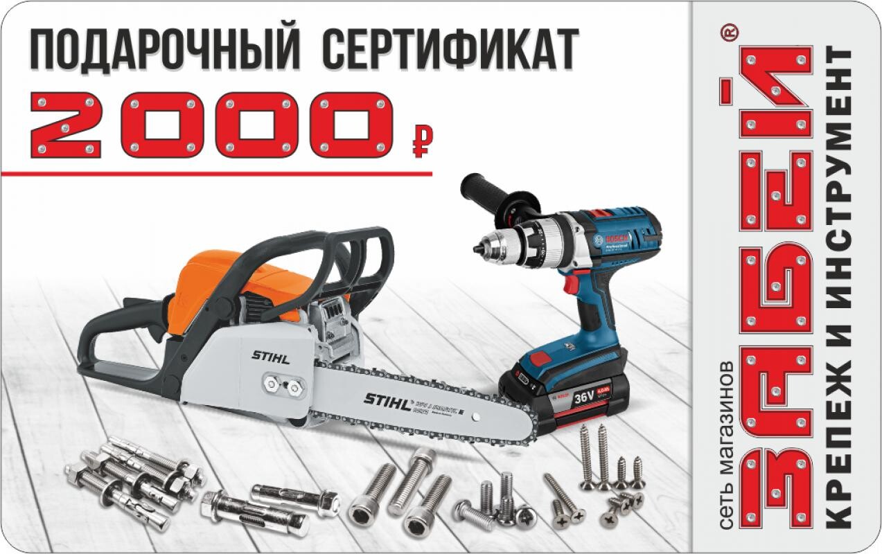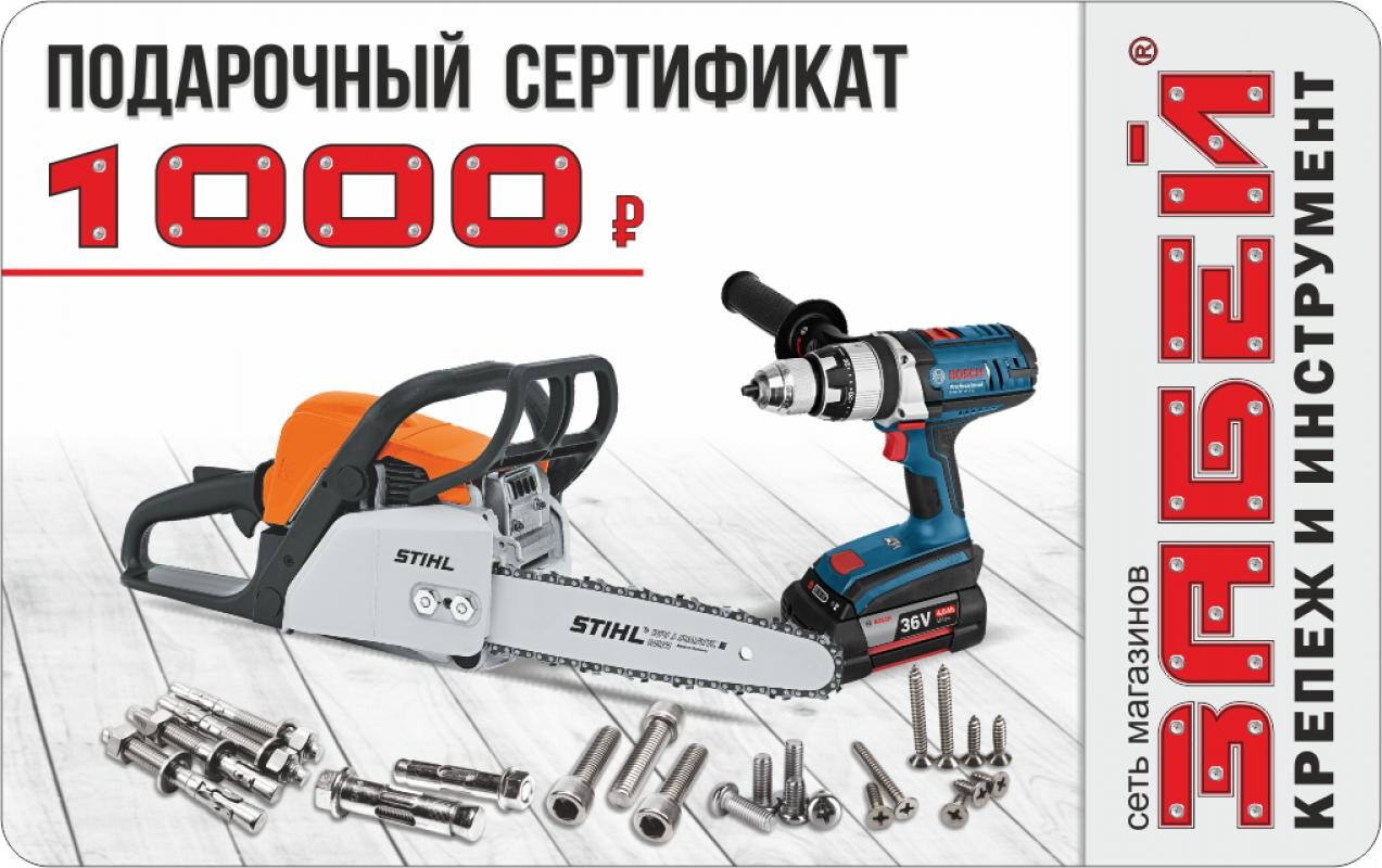 Являясь обладателем подарочного сертификата «Забей» Ваши друзья и близкие будут благодарны за предоставленный им выбор подарка! Будь то крепёж или инструмент, расходные материалы или садовый инвентарь, обладатель подарочного сертификата всегда сможет выбрать именно тот товар, который ему действительно нужен. Подарив подарочный сертификат «Забей», Вы не промахнётесь с подарком! Ведь свобода выбора и есть самый лучший подарок.
