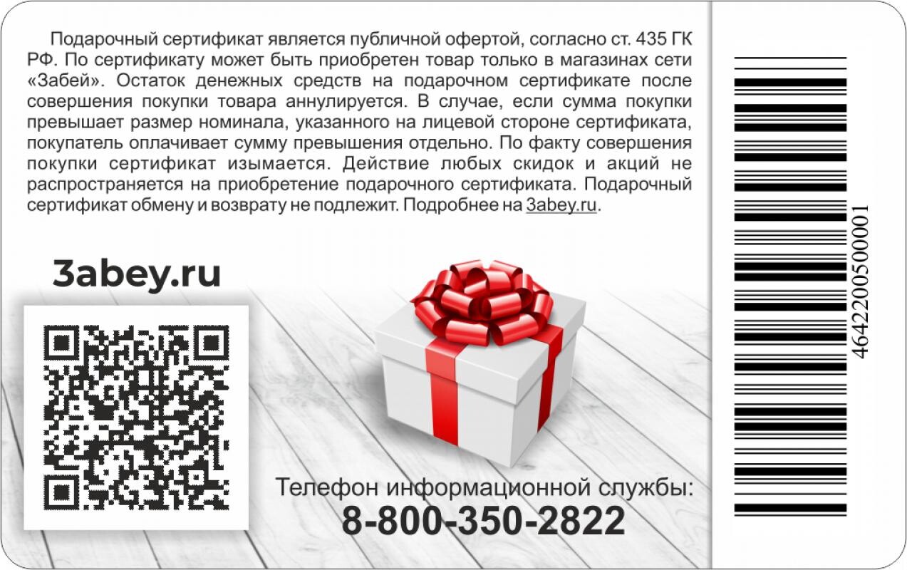 Рассчитаться подарочным сертификатом возможно только в розничных магазинах «Забей».